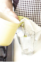 (1)からティーバッグと香辛料を取り除き、温めたカップに注ぐ(写真a)。好みではちみつを加えていただく(写真b)。 |