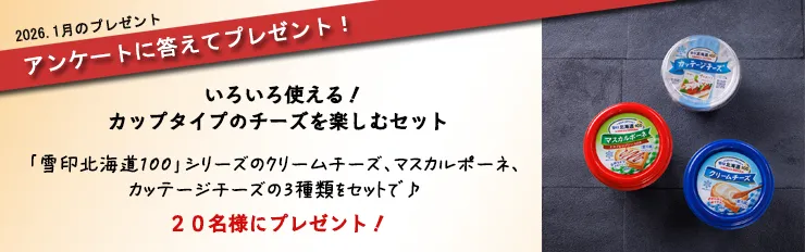 毎月、チーズにまつわるアンケートを実施します。お答えいただいた方の中から、チーズ等の詰め合わせをプレゼントいたします。