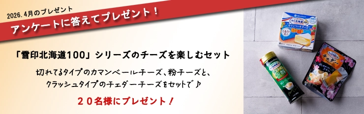 毎月、チーズにまつわるアンケートを実施します。お答えいただいた方の中から、チーズ等の詰め合わせをプレゼントいたします。