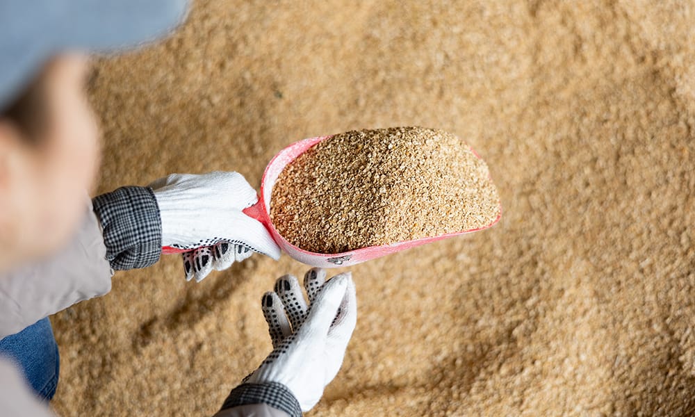 飼料事業では、各地の地域性に合わせた乳牛用・肉牛用配合飼料を日本全国に提供しています。また、「おから」「ビール粕」などの食品製造副産物を乾牧草と組み合わせて、乳酸発酵(サイレージ化)させたウェット飼料の開発も行っています。