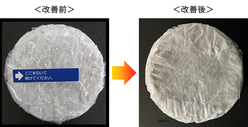 チーズを包む透明フィルムのはがし口を分かりやすくしました。