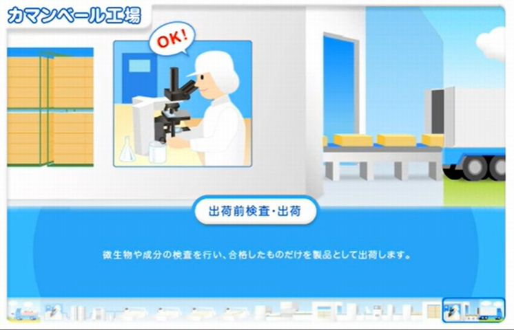 カマンベールチーズができるまでの流れをアニメーションでまとめてご覧いただけます。
