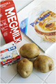 じゃがいもは皮をむき、1個を4等分して水にさらす。水気をきり、クッキングペーパーを敷いた耐熱容器に入れ、ふわっとラップをかけて電子レンジ(600w)で約7分加熱する。 |