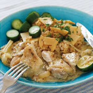 | 6 | (5)にワインを入れて煮立ててアルコールを飛ばし、生クリームを加える(写真c)。煮立ったら(4)を戻し入れ(写真d)、蓋をして弱火で5分くらい煮る。鶏肉は途中で一度返し、なじんだらマスタードを加え、味をみて、塩、こしょうで調える。 |