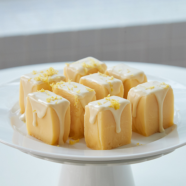 しっとりと濃厚な味が楽しめるホワイトチョコテリーヌ。風味づけに加えたブランデーと、レモンの爽やかさがきいています。チョコレートは繊細なので、湯煎にかけながらゆっくり溶かし、溶き卵も少しずつ加えて、チョコレートによくなじませるのがポイントです。また、コーティング用のホワイトチョコレートをきれいに仕上げるには、湯煎で溶かした後、触っても熱くない程度(少しとろりとしてから)になってからかけるのがコツ。熱いままだと、ケーキにかけても流れ落ちてしまうからです。コーヒーや紅茶のほか、ワインなどにも合う大人の味です。