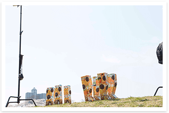京成電鉄・日暮里駅の駅構内に、牛乳パックでつくった乗りものの街