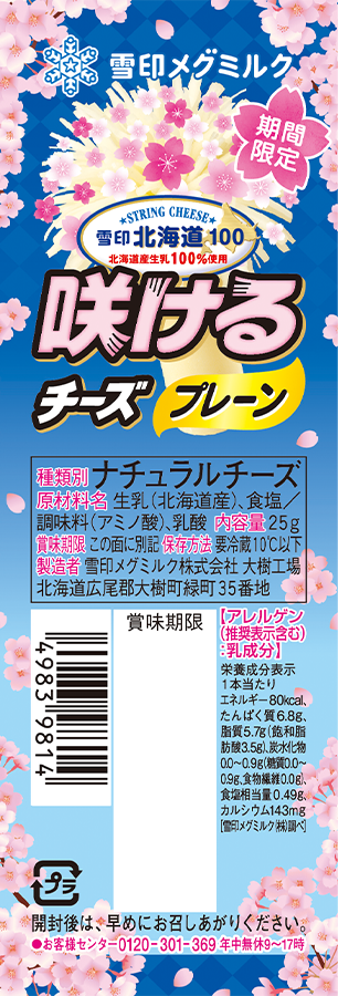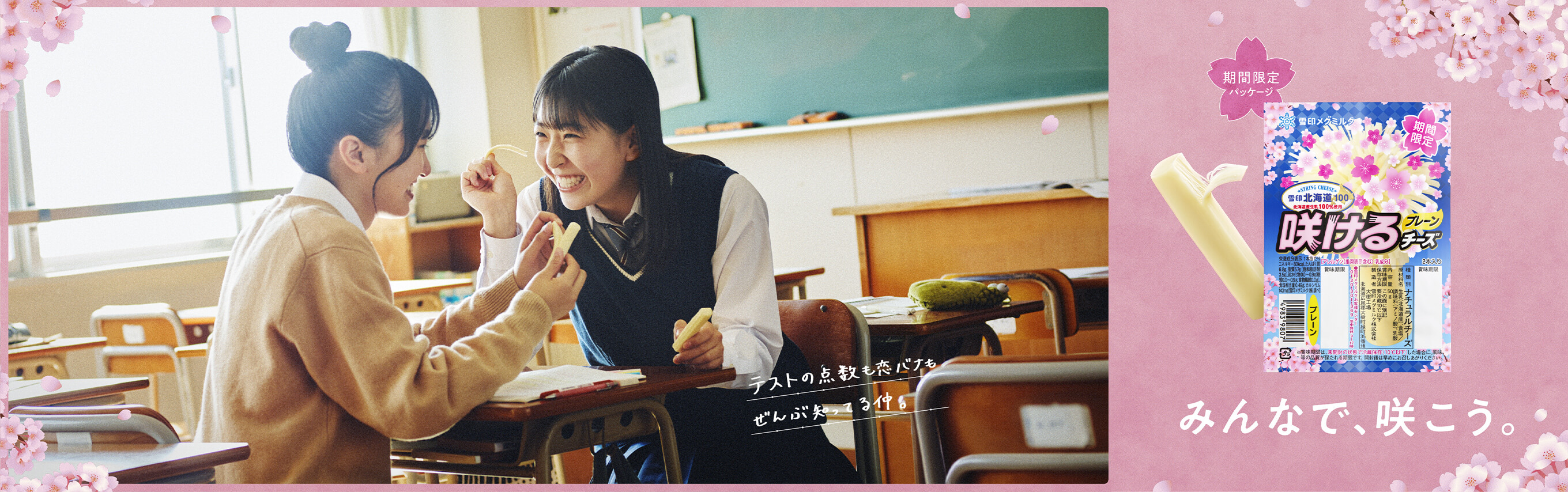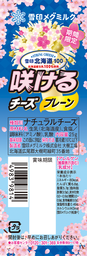 - ・「チーズをさく」「桜が咲く」の語呂にちなんで、「咲ける」の文字を採用