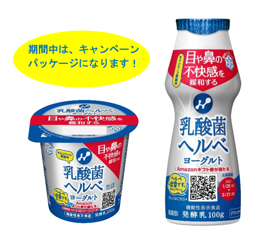 このたび、多くの皆さまに、「乳酸菌ヘルベヨーグルト」シリーズをお試しいただきたく、1月25日(火)より、Amazonギフト券が当たる、目鼻の不快感にはじめるとです。「ヘルベ」の出番です。キャンペーンを実施します。同時に、2021年10月から公開している連続WEB CMの第2弾がスタート。第1弾では声だけの出演だった、お笑いタレントのヒロシ氏がついに登場します。