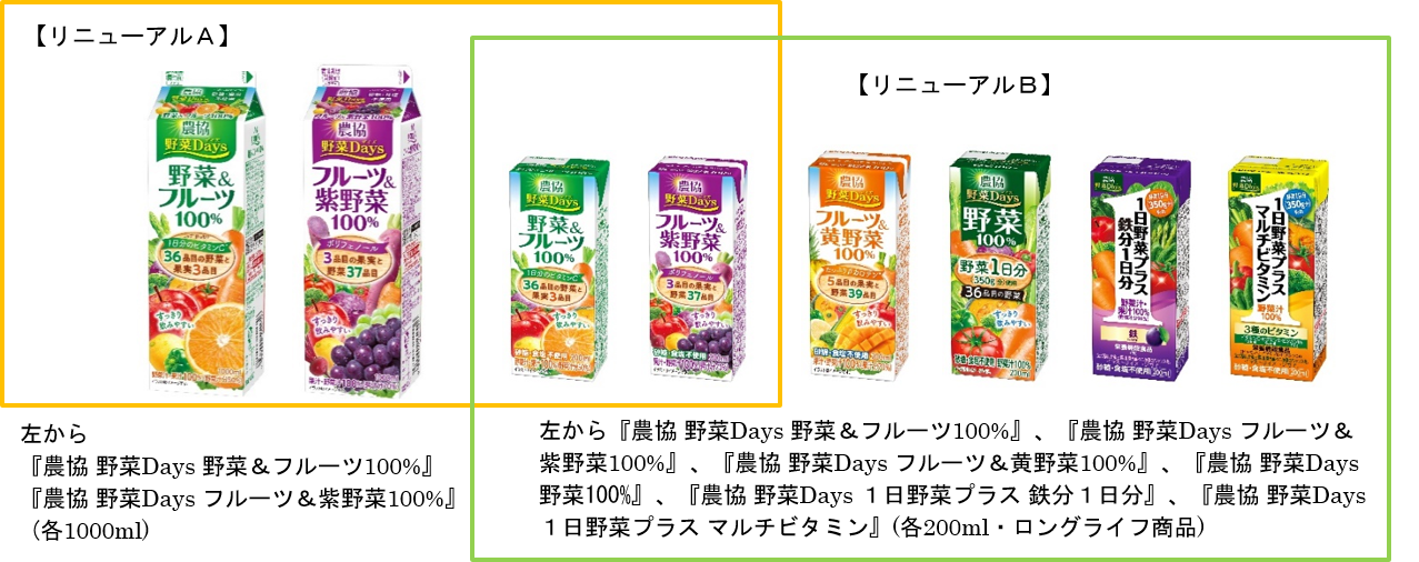 「農協 野菜Days」シリーズは、野菜のおいしさにこだわった、多くの品目の野菜と果実を使用した飲料です。野菜のクセがなくすっきりと飲みやすい、使用している野菜の品目数が多い、大容量品の価格が手頃という点を評価いただいています。お客様の評価やニーズを踏まえ、さらなる改良を加えて、より商品価値を高めるリニューアルを実施します。