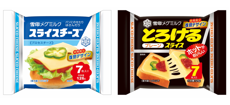 雪印メグミルク株式会社(本社:東京都新宿区、社長執行役(CEO):佐藤 雅俊)は、『スライスチーズ(7枚入り)』および『とろけるスライス(7枚入り)』(各126g)のパッケージを復刻デザインにて期間限定発売いたします。