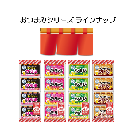 おつまみシリーズは、「風味がイメージしやすく味がはっきりしていること」「お酒のおつまみにぴったりな風味」を価値として風味を選定し、全4種類のラインナップを揃えています。