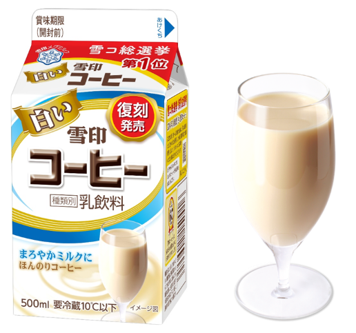 このたび「雪印コーヒー」発売60年プロモーションの一環として、2022年3月から4月にかけて実施した、「雪印コーヒー500ml」シリーズ過去発売商品の人気投票企画「雪コ総選挙」の結果、『白い雪印コーヒー』が第1位を獲得しました。