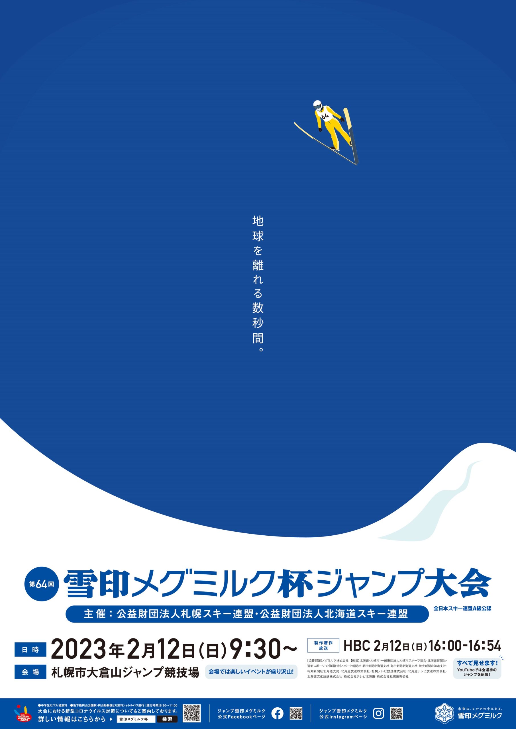 雪印メグミルク株式会社(本社:東京都新宿区、代表取締役社長:佐藤雅俊)は、2023年2月12日(日)開催の「第64回 雪印メグミルク杯ジャンプ大会」(主催:公益財団法人札幌スキー連盟、公益財団法人北海道スキー連盟)に協賛いたします。