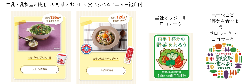 牛乳・乳製品には、カルシウムやたんぱく質といった栄養素が摂取できるほか、料理にコクやうまみをプラスするチカラがあります。当サイトでは、都道府県別の1日当たりの野菜摂取量や、牛乳・乳製品を使用した1食分の目安である両手1杯分(約120g)の野菜をおいしく食べられるメニューの紹介、野菜摂取向上に関する施策や活動内容など、随時紹介していく予定です。