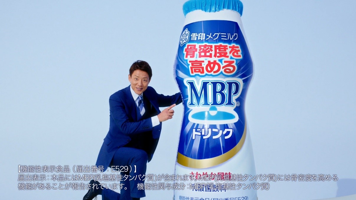 女性たちとの「MBPドリンク」飲用カットを挟み、ラストは「骨密度ならMBP🄬♪」と改めてサウンドロゴで締めくくり、MBP®の機能を強く印象に残します。