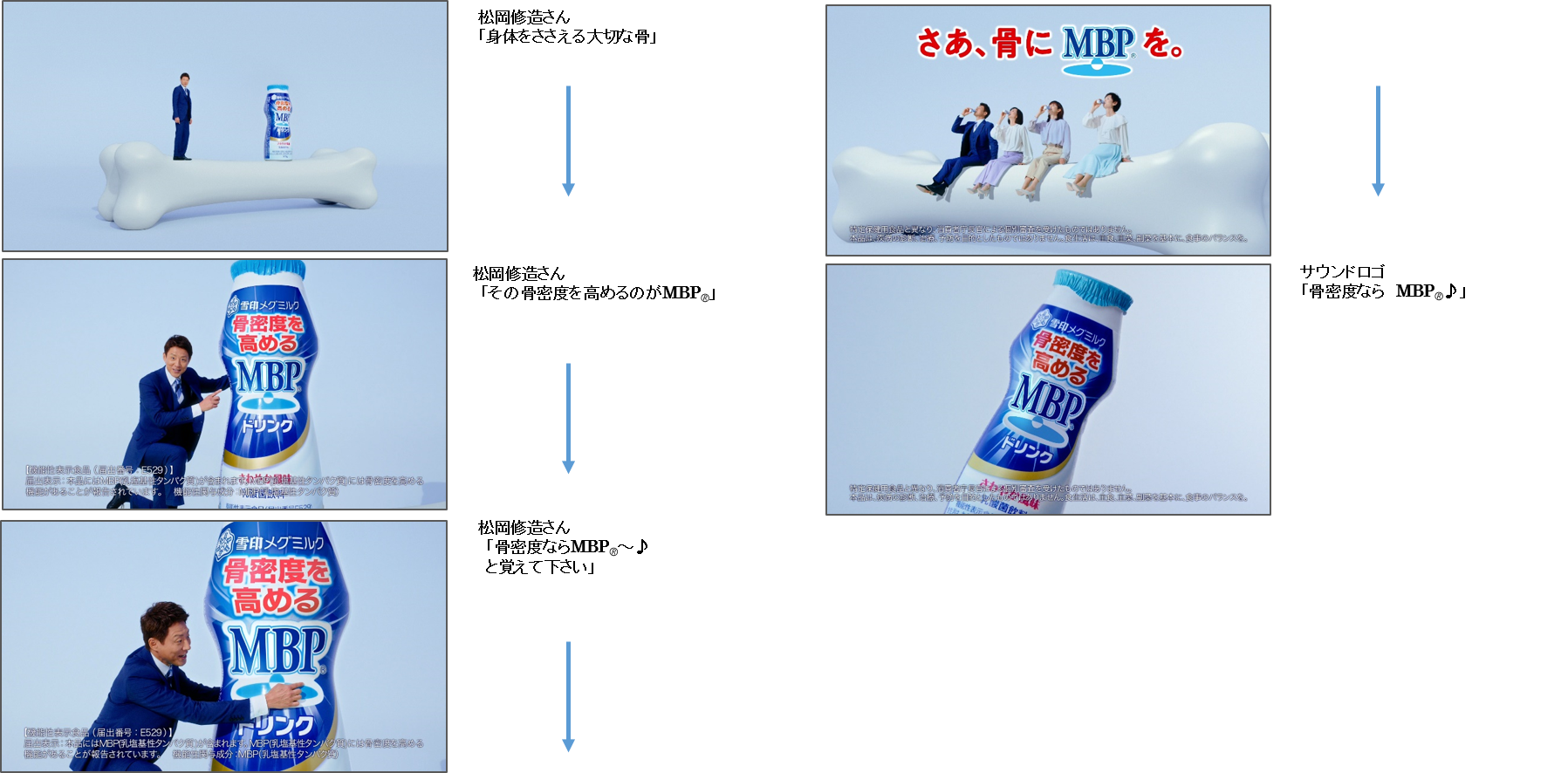 新作テレビCMに、雪印メグミルク健康推進アンバサダーである松岡修造さんに、引き続きご出演いただきます。より多くの方に、MBP🄬の「骨密度を高める」機能を知っていただくため、今回新たにサウンドロゴ「骨密度ならMBP🄬♪」を作成し、松岡修造さんに歌っていただいています。