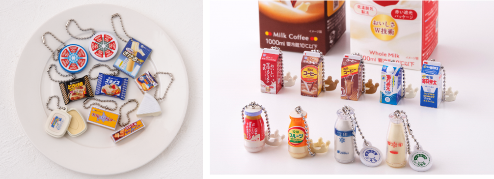 左:『雪印メグミルク ミニチュアチャーム ~乳製品シリーズ2~』(1回300円税込、全9種)