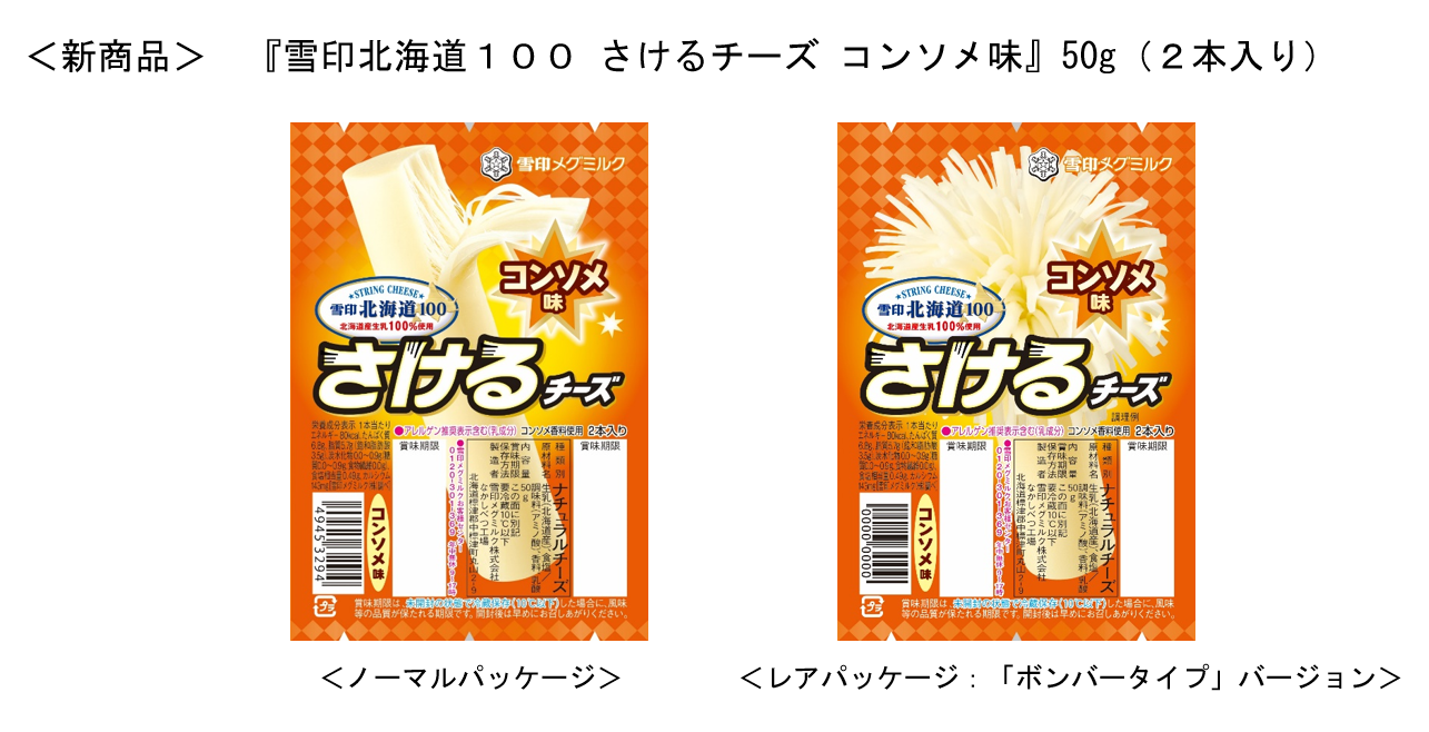 雪印メグミルク株式会社(本社:東京都新宿区、代表取締役社長:佐藤 雅俊)は、『雪印北海道100 さけるチーズ コンソメ味』50g(2本入り)を2023年10月1日(日)より全国にて新発売いたします。