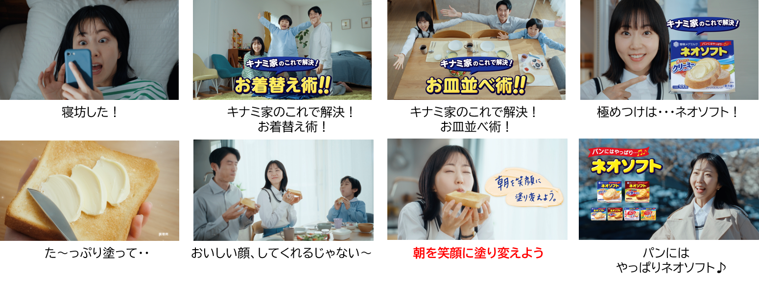 今シリーズでは、木南さんが初めてママ役に挑戦しています。忙しい朝の支度を「キナミ家」の数々の術で解決し、さらに『ネオソフト』があることで家族みんなが朝を気持ちよく笑顔で過ごすことができる様子をコミカルに描いています。