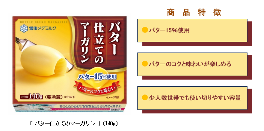 雪印メグミルク株式会社(本社:東京都新宿区、代表取締役社長:佐藤 雅俊)は、『バター仕立てのマーガリン』(140g)を2024年9月上旬より全国にてリニューアル発売いたします。