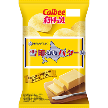 『ポテトチップス 「雪印北海道バター」味』は、雪印メグミルクの「雪印北海道バター」とカルビーの「ポテトチップス」がコラボして誕生したポテトチップスです。