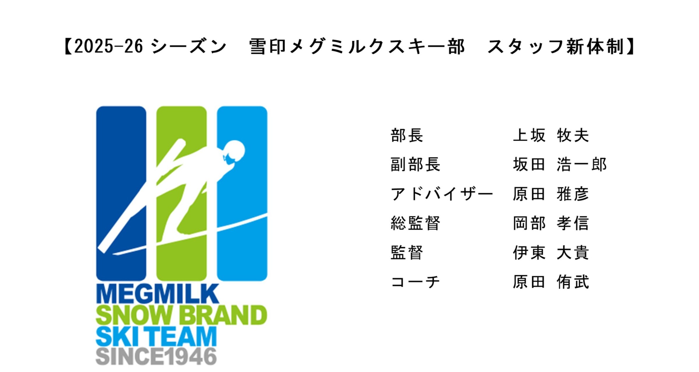 雪印メグミルクスキー部(雪印メグミルクスキー部長:上坂 牧夫)は、2025年度(2025-26シーズン)のスタッフ新体制を決定しましたので、お知らせいたします。
