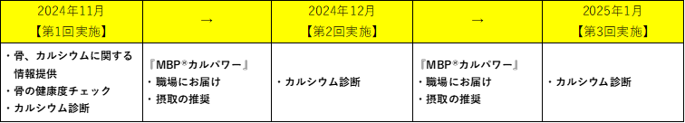 参加者は始めに骨・カルシウムに関する情報提供、骨の健康度チェックによって基本的な知識、自身の骨の健康度を認識した上で、2024年11月から2025年2月までの約3ヶ月間、プログラムに参加しました。