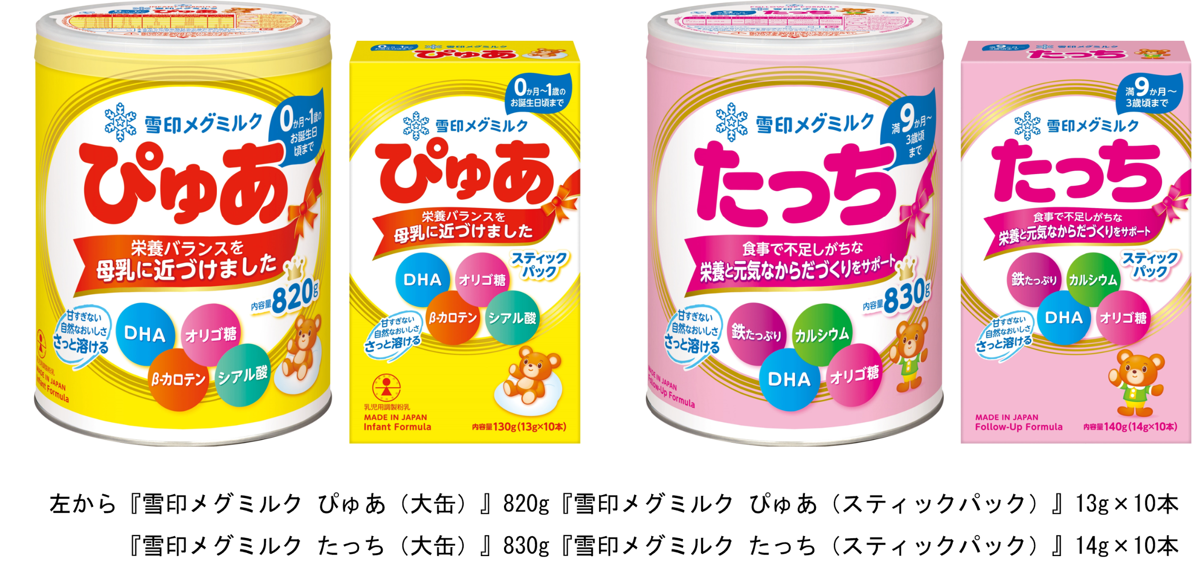 『雪印メグミルク ぴゅあ(スティックパック)』(13g×10 本)、『雪印メグミルク たっち(大缶)』(830g)および『雪印メグミルク たっち