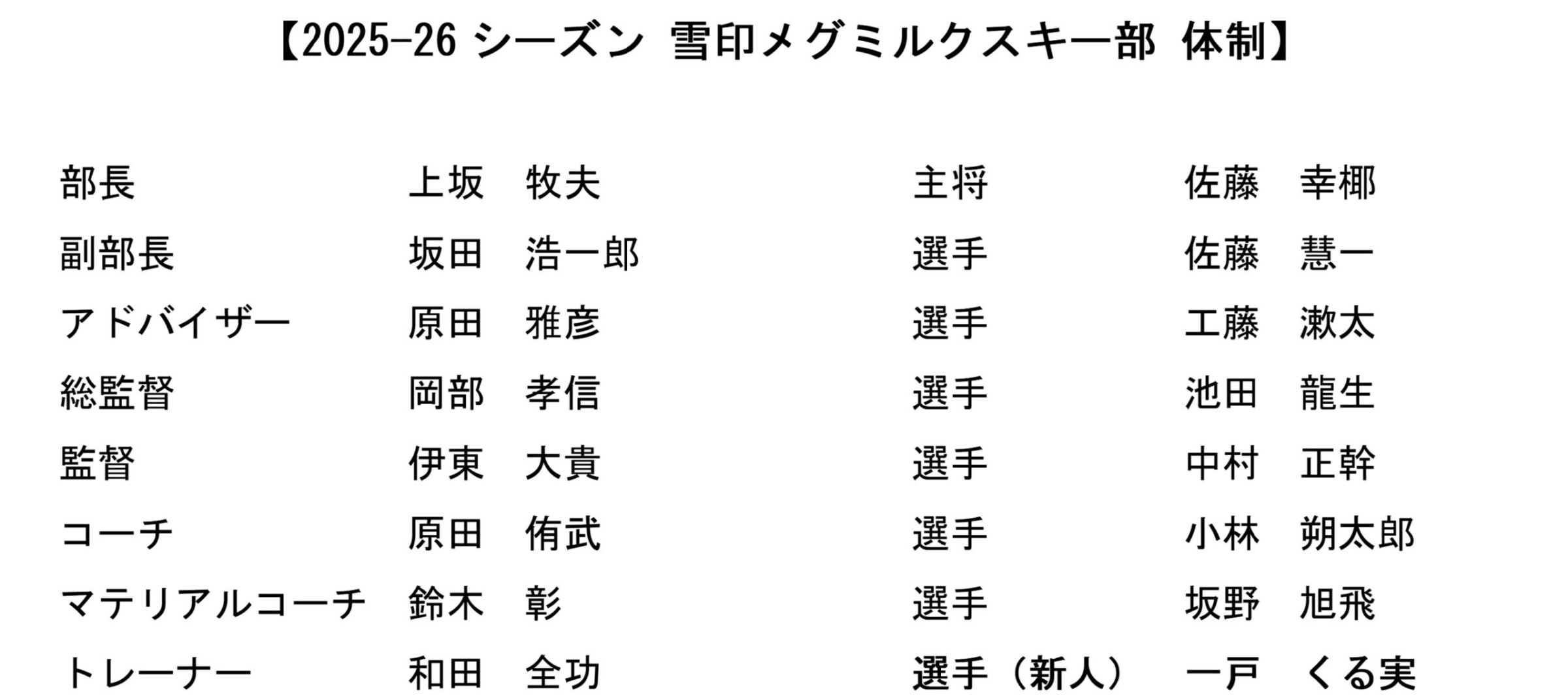 新しいシーズンに向け、新体制となった雪印メグミルクスキー部に、今後とも変わらぬご支援とご声援を賜りますようお願いいたします。