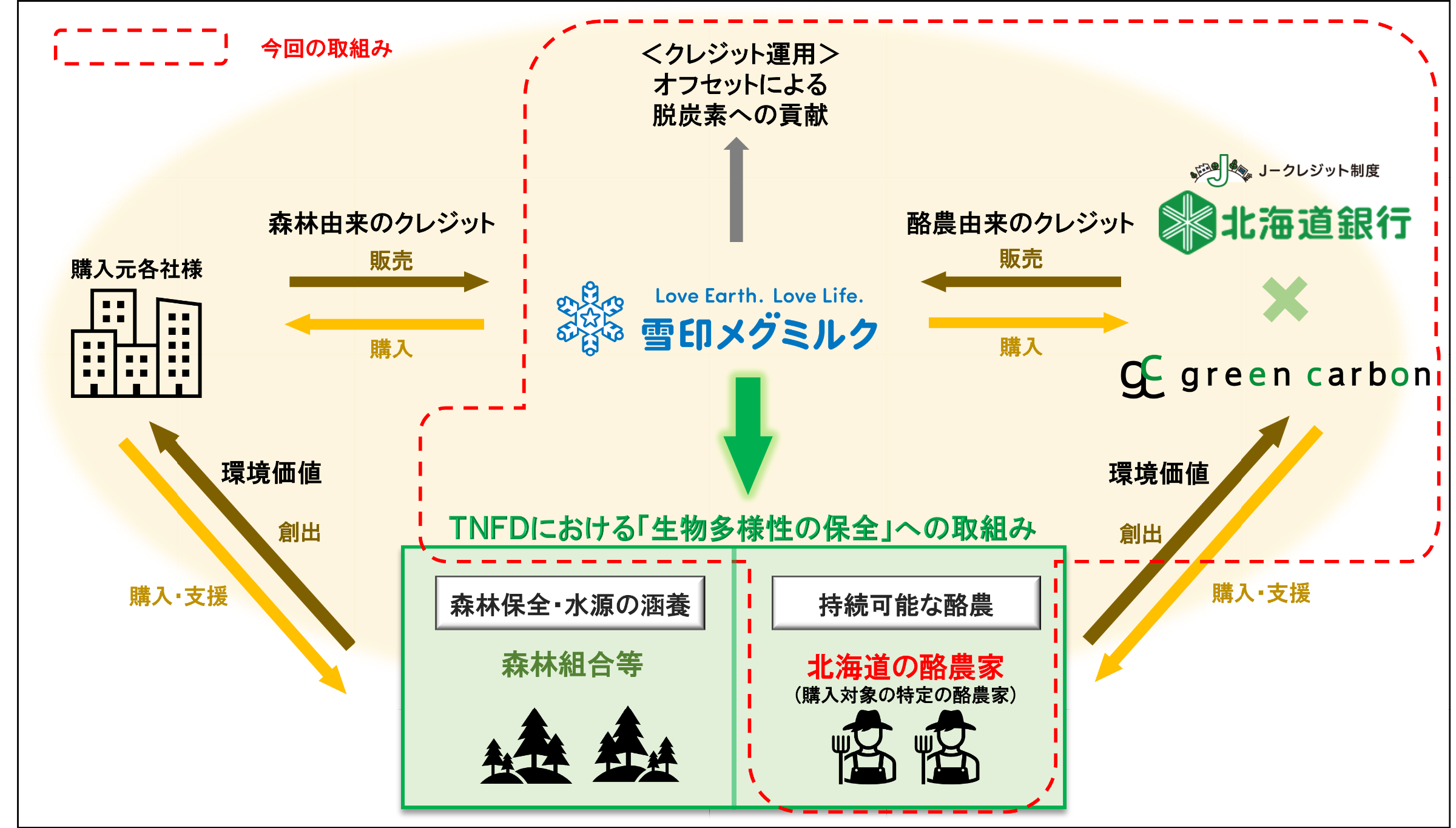 雪印メグミルク株式会社(本社:東京都新宿区、代表取締役社長:佐藤 雅俊)は、持続可能な酪農生産へ貢献するため、株式会社北海道銀行(本店:北海道札幌市、頭取:兼間 祐二)およびGreen Carbon株式会社(本社:東京都港区、代表取締役:大北 潤)と連携し、酪農由来のJ-クレジット※の活用を開始いたしました。