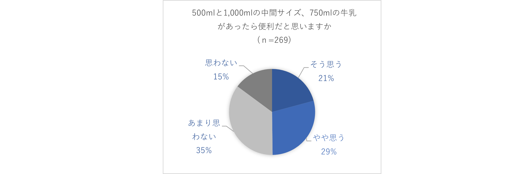 牛乳を捨てたことがある人の約半数は、500mlと1000mlの中間サイズである750mlの牛乳があったら便利だと思う、と回答しました。