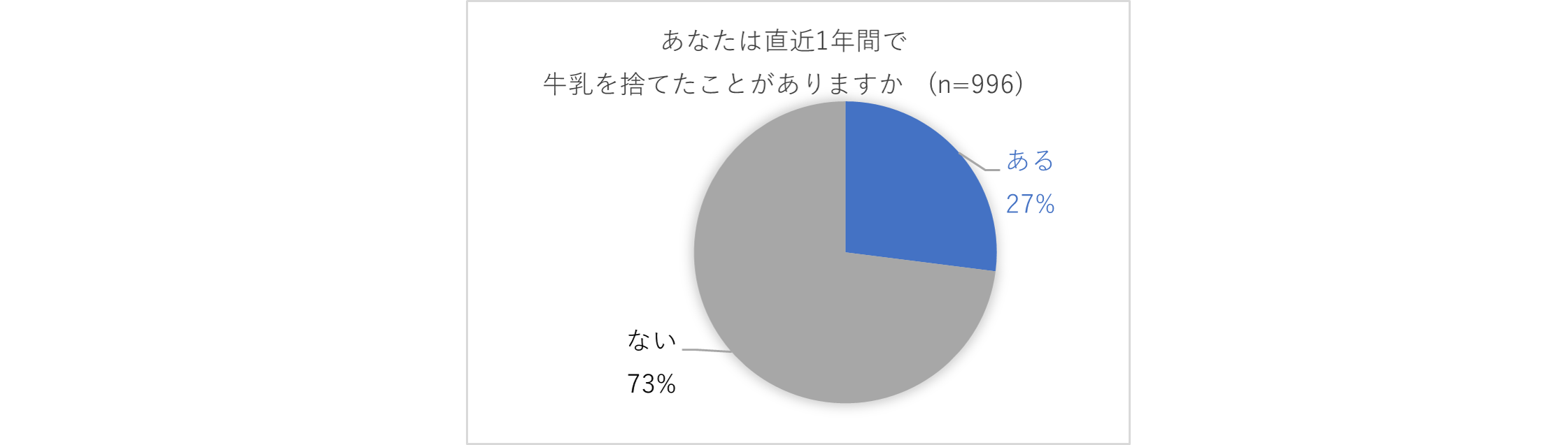 少人数世帯の約3割(27%)の人は牛乳を捨てたことがあると答えました。