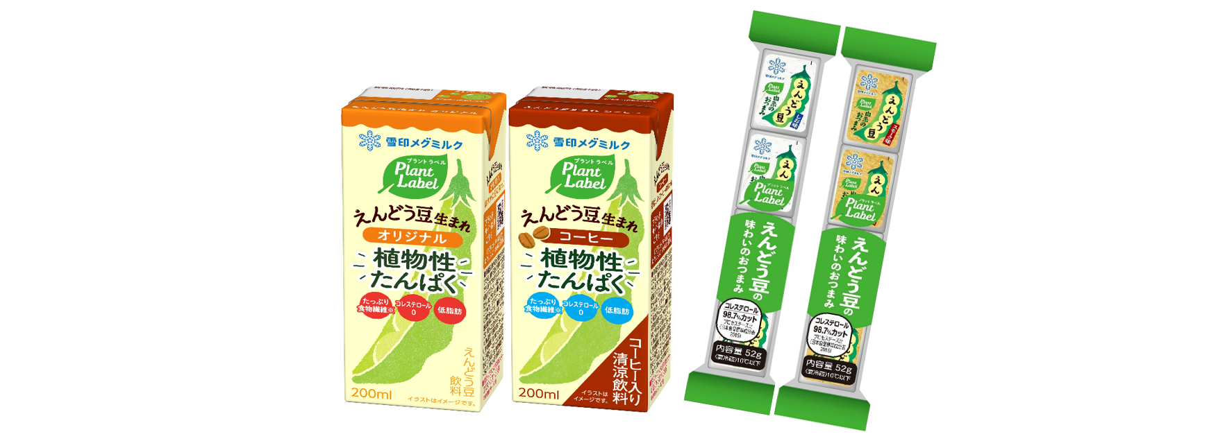 「Plant Label えんどう豆生まれ オリジナル/コーヒー」 「Plant Label えんどう豆由来のおつまみ しお味/スモーク味」*植物油脂加工品