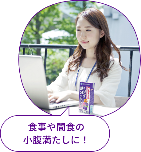 ※鉄分は汗のほか、尿、便、月経血などによって体外に排出されます。 鉄分が不足すると、酸素が体中に行き渡りにくくなり、 なんとなくブルーな症状が……。 プルーンFe 1日分の鉄分 のむヨーグルト プルーンFe 1日分の鉄分 のむヨーグルト 糖質・カロリーオフ® プルーンFe 1日分の鉄分 ヨーグルト プルーンFe 2本で1日分の鉄分 チーズ