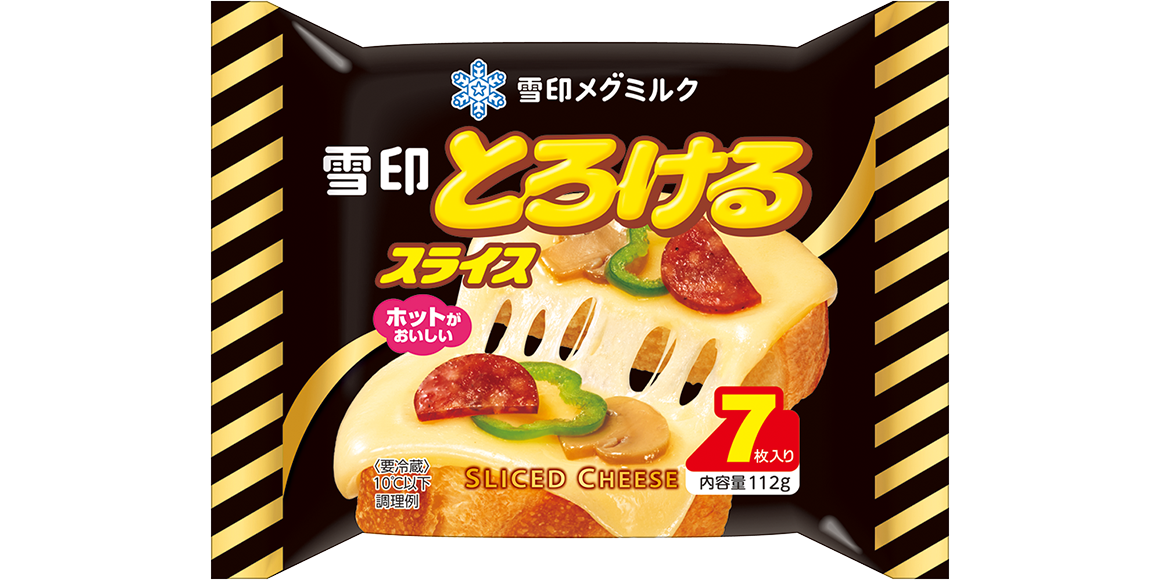 焼いたときに焦げ目がつく、とろけるスライスです。この商品は、原料チーズの配合で成分・熟度を調整し、焦げ目がつくようにミルク由来の糖質を配合し、さらに乳化を最適にコントロールする技術を開発することにより実現しました。また、トースターによって焼き加減にばらつきがあることも踏まえ、ほとんどの機種で均一に焼き色がつくように1,000枚を超えるトーストを焼いて商品を完成させています。