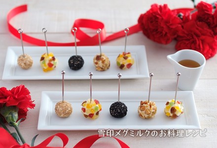 ピックにさして、はちみつ又はメープルシロップを添える。