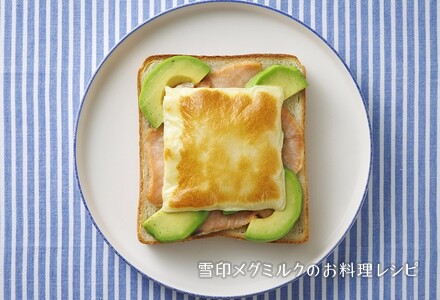 スライスしたアボカドとスモークサーモンをのせ、チーズをのせてトースター(1000W)で4~5分焼く。