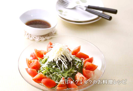 水菜は3㎝の長さに切り、しらすと合わせ、トマトはへたを取り除き、ひと口大に切っておく。