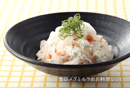 簡単にできるチーズを使った和え物です。鮭フレークの塩味をカッテージチーズのさわやかでマイルドなミルキー感が包み込み、細切り大根の食感とのコントラストが楽しめます。