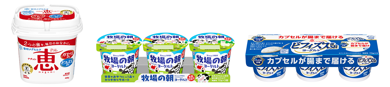 雪印メグミルクグループでは、容器包装における石油由来プラスチックを削減するため、2030年度に石油由来のプラスチック使用量を2018年度比で25%削減(売上原単位)することをKPIと定め、脱プラ分科会で削減施策を検討しています。2025年3月から「ナチュレ 恵 megumi」「牧場の朝ヨーグルト」「恵 megumi ビフィズス菌SP株ヨーグルト」の3ブランドにバイオマスプラスチックを10%配合した容器を導入します。この取組みにより雪印メグミルク(株)の石油由来プラスチック使用量は年間で500t超の削減見込みとなり、大きな効果が期待されます。