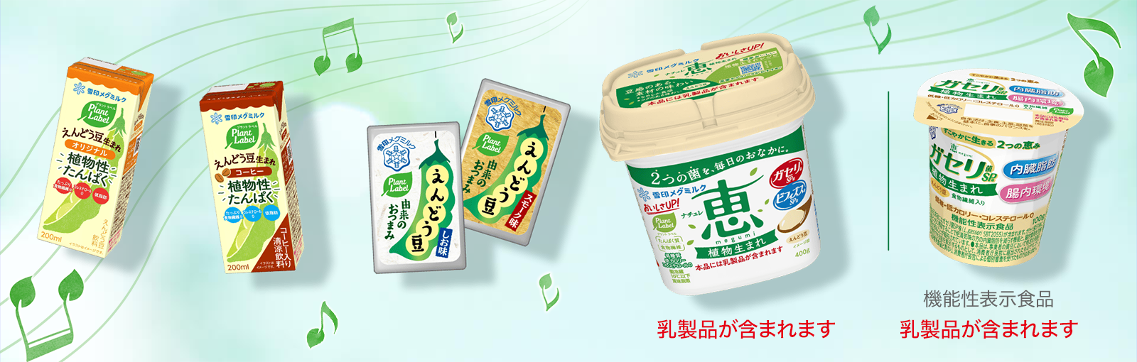 2024年3月に、プラントベースフードの新ブランド「Plant Label」(プラントラベル)を立ち上げ、販売を開始しました。プラントベースフードは、世界人口の増加を背景に食料の安定供給が求められる中、たんぱく質の新たな選択肢として注目されています。市場規模は世界的に拡大傾向にあり、その中でも成長著しい植物性素材が「えんどう豆」です。大豆やアーモンドと比べて生産時の水の使用量やCO2排出量が少ないサステナブルな原料でありながら、脂質が少なく、高たんぱくで食物繊維が豊富という特徴があります。2024年9月には、えんどう豆の味わいが楽しめる「Plant Label えんどう豆由来のおつまみ しお味/スモーク味」を発売しました。雪印メグミルク(株)がこれまでに乳で培ってきた幅広い知見や機能を活かし、プラントベースフード市場という新たな領域に挑戦します。