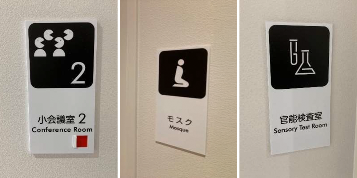 雪印メグミルク(株)大樹工場では、「特定技能」の在留資格をもつインドネシア国籍の従業員が働いています。宗教・文化・習慣に沿った生活ができるように、イスラム教の礼拝室、足洗設備を整え、各施設にピクトグラムを設置し、作業標準、手順書、日報類にふりがなを記載しています。